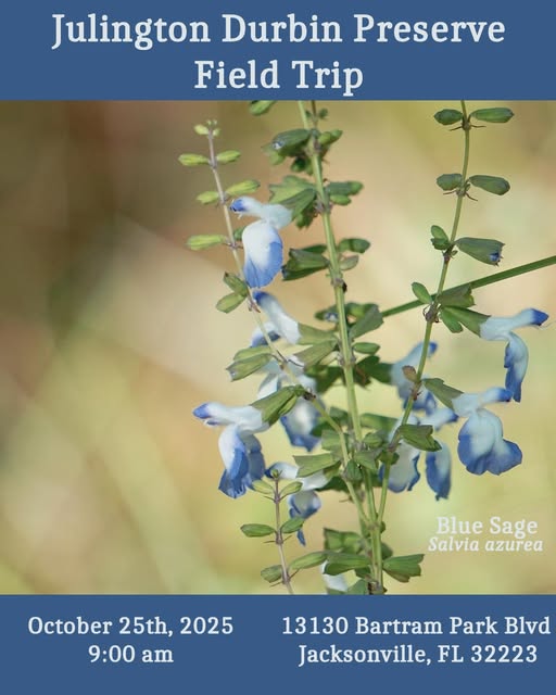 Celebrate Florida Native Plant Month with the Ixia Chapter of the Florida Native Plant Society on a guided field trip through Julington-Durbin Creek Preserve—one of Duval County’s most biologically diverse natural areas. This unique peninsula features rare Longleaf Pine habitat and is home to 11 endangered and threatened plant species, including Bartram’s Ixia, the chapter’s namesake, found only in a few counties. Bring water and wear closed-toed shoes and a hat. No RSVP required—just come ready to learn and explore!