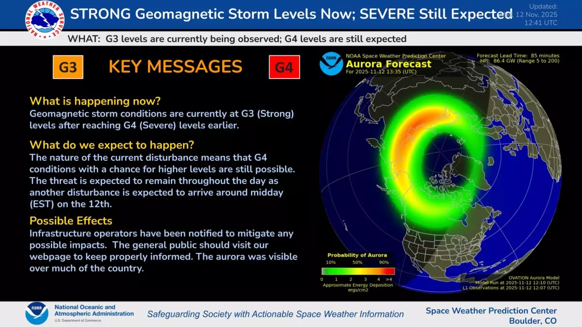 When fast-moving particles and plasma slam into Earth’s magnetic field, they can temporarily disrupt the power grid. Space weather can also interfere with air traffic control radio and satellites in orbit. Severe storms can scramble other radio and GPS communications.