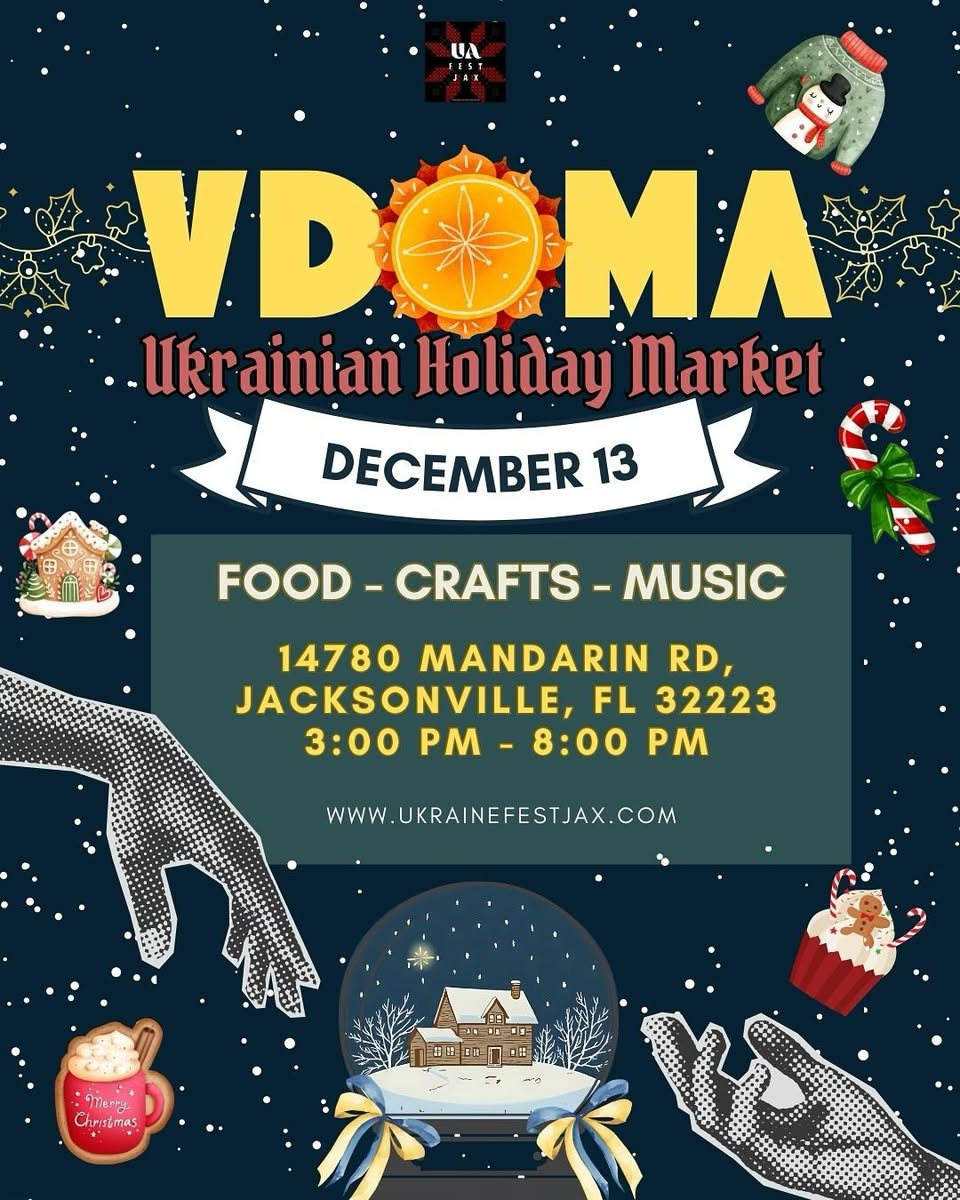 Did you know Jacksonville has the largest Ukrainian population in Florida? And that means we get to enjoy events like the Ukrainian Holiday Market, organized by Ukraine Fest Jax, whose mission is to celebrate Ukrainian culture and foster connections with all of Jacksonville. At the market, you’ll find authentic homemade Ukrainian dishes and sweets and unique handmade crafts, live music and demonstrations, activities and games for kids, along with interactive programs and hands-on workshops for the adults. In the winter tradition of Ukraine, there will be lots of Christmas lights and cozy spaces for socializing while sipping hot uzvar. (Trust me, it’s so good on a cold night!) And pro tip: Enter the Coziest Christmas Market Snapshot Contest for a chance to win $100. Uh, challenge accepted!