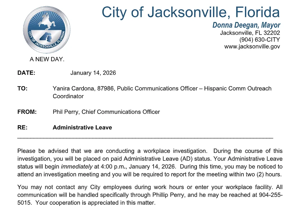 “Every Jax resident wants to know does Mayor agree or disagree with the position of her employee on directing people how to illegally evade law-enforcement? And Does the Mayor support or oppose the work of law-enforcement on illegal immigration?”