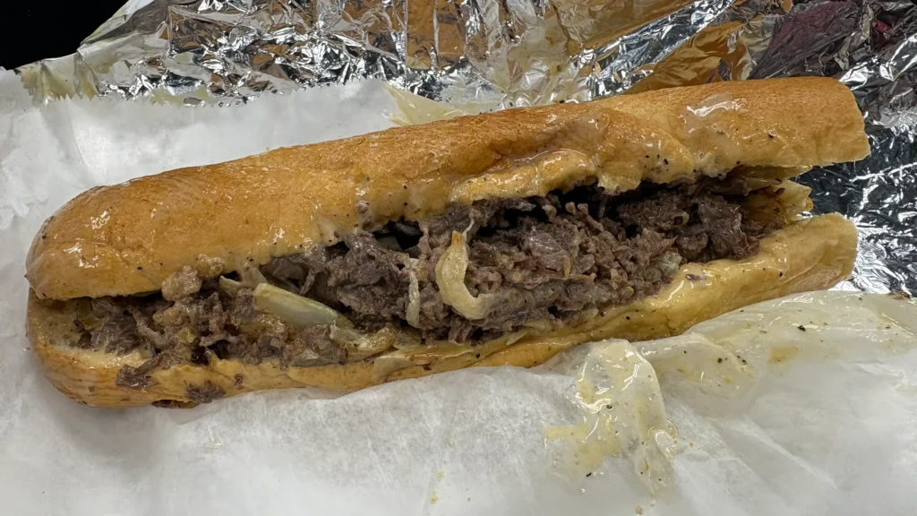 Of the sandwich shops I visited, none flaunted their Northern pride more flagrantly than Eddis & Sons, the popular extension of a former food truck. I’m not sure where comment cards were posted in Eddis’ mobile era, but the current restaurant’s walls are plastered in scrawled salutes to the Eagles and customers’ hometowns. As such, I suspect patrons privately worry they’ll put their Philly bona fides in doubt if they don’t loudly proclaim Eddis & Sons’ superiority. With no cred to defend, I can say the fresh Amoroso roll is standout, but the bread-to-meat ratio tilts too far in its favor.
