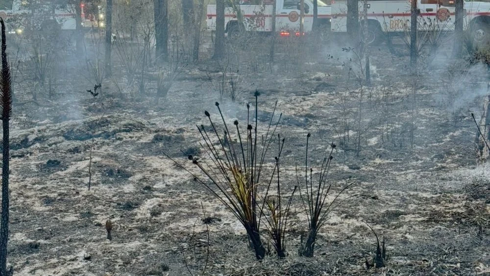 Jacksonville Fire and Rescue tackled this 2-acre brush fire Tuesday, Feb. 10, 2026, on UNF Drive. The fire was listed as 95% contained as of Wednesday. | JFRD