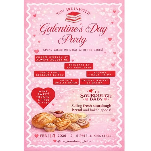 Midnight Moon Books & Boutique in Historic Downtown will host a Galentine’s Day event this weekend, with a small group of curated local vendors set up inside the shop. (Tarot card readings, jewelry, books, skincare and sourdough will all be on offer.) Authors Shelley Marsh and Tracy Tripp will be onsite signing books as well. The event is an informal, come-and-go gathering, with wine, sweet treats and complimentary gifts. Bring your favorite girlies and treat yourselves while you browse for your next great read.