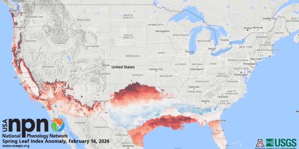 Data released by the USA National Phenology Network shows that most communities across the state were seeing the first signs of growth before late January’s Arctic blast that put a temporary halt on the activity.