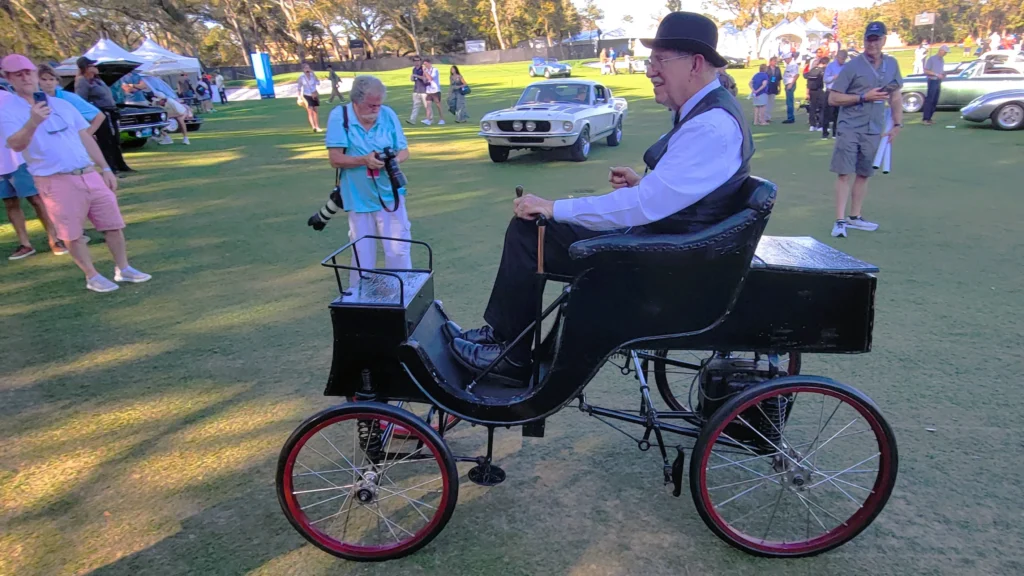The oldest car at the concours was an 1896 Riker Electric Prototype Made in Brooklyn New York by A.L Riker. His grandson, Rick Riker, said people asked his grandfather back then if he would build an electric vehicle — and he did.