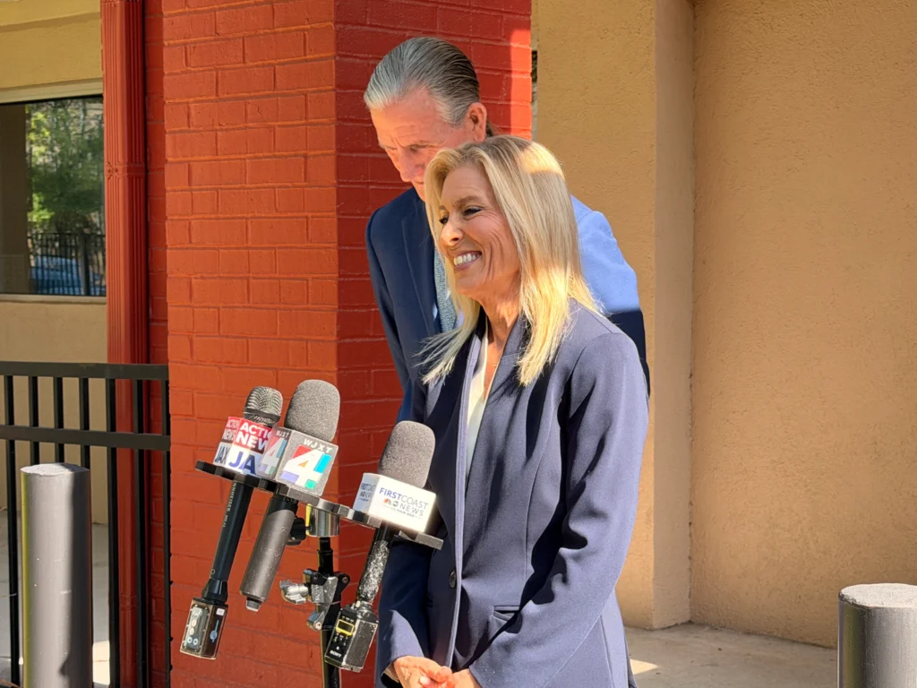 After signing her candidate paperwork, Deegan held a news conference outside the Duval County Supervisor of Elections Office, where she touted her administration’s financial investments in infrastructure projects, health care, literacy programs and affordable housing since she took office in July 2023.